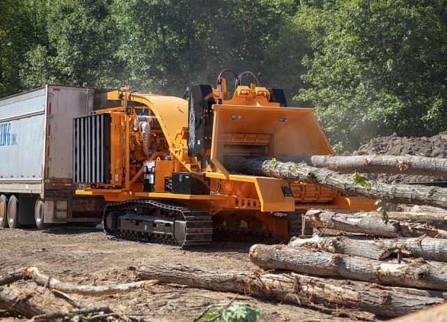 На выбор доступны варианты двигателей от 755 до 1050 лошадиных сил. Стандартный стационарный разгрузочный желоб для лесозаготовительной техники увеличивает скорость выброса щепы при полной загрузке фургонов для щепы до их максимальной вместимости.