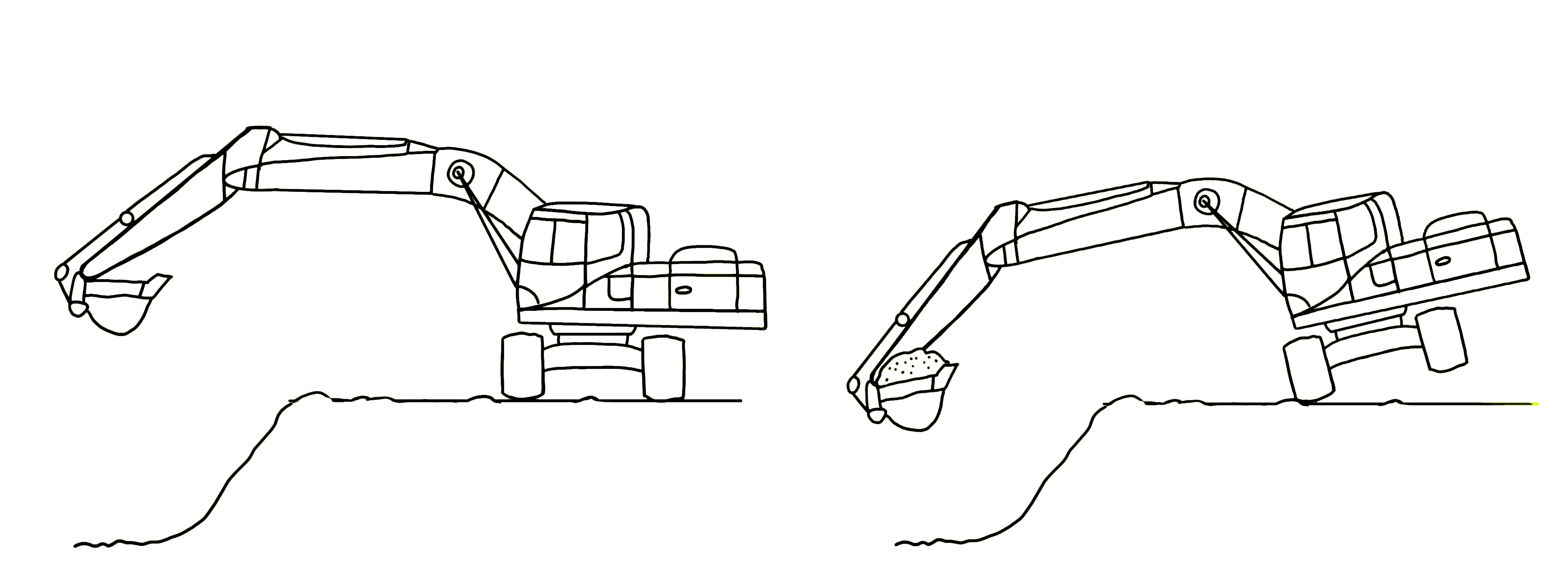 Чем тяжелее ковш с грунтом, тем меньшего объёма он должен быть, чтобы машина не перевернулась.