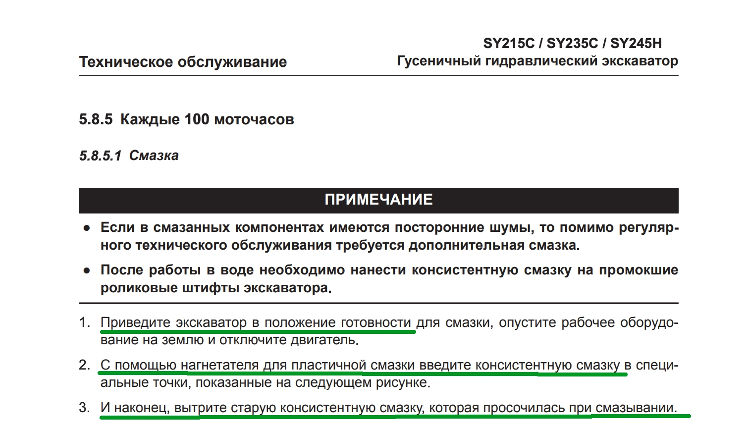 В руководстве по эксплуатации экскаватора SANY подробно описываются алгоритмы большинства процедур, входящих в техобслуживание