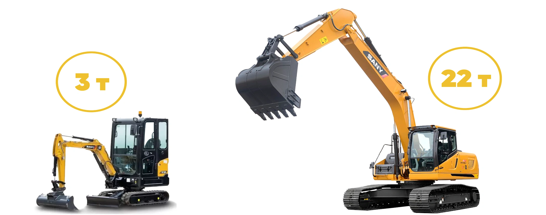 Удобнее всего классифицировать экскаваторы по массе: мини-экскаваторы, малые, средние, большие