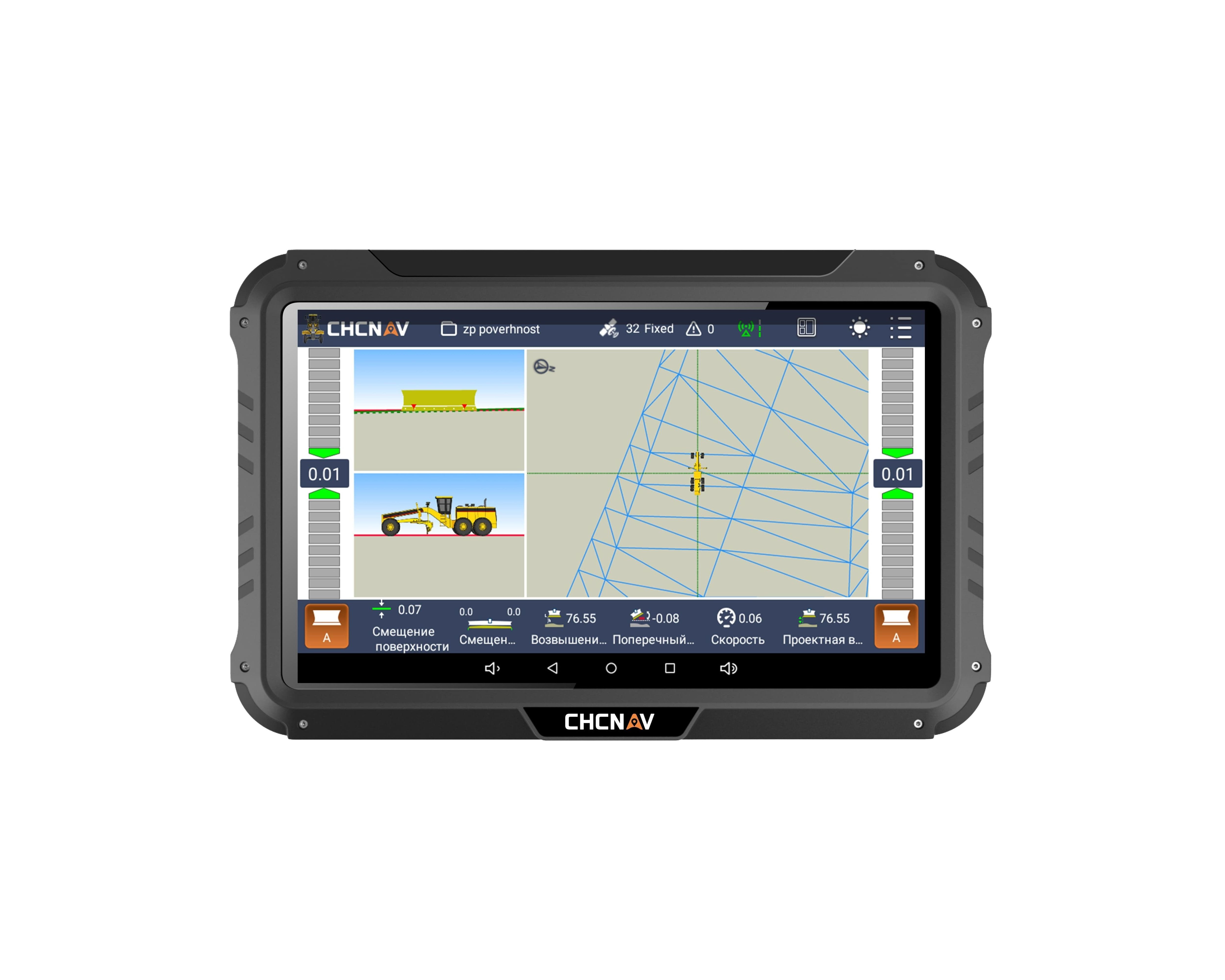Программное обеспечение GradeNav, установленное на цветном 10 дюймовой панели под управлением ОС Android предоставляет максимум информации на одно экране.
