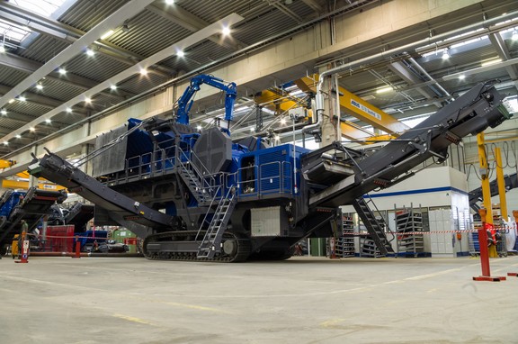 Дробильная установка первичного дробления, конструкция, концепция привода и мощность которой специально рассчитаны на использование в карьерах для добывания камня. Приводная мощность 49-тонной щёковой дробилки типа SStR 1250 x 1000 с особенно длинной щекой составляет 200 кВт. При эксплуатации генератор мощностью 540 кВ·А создаёт достаточно энергии для привода других внешних потребителей, таких как вибрационный грохот, освещение или передвижные ленточные транспортёры.