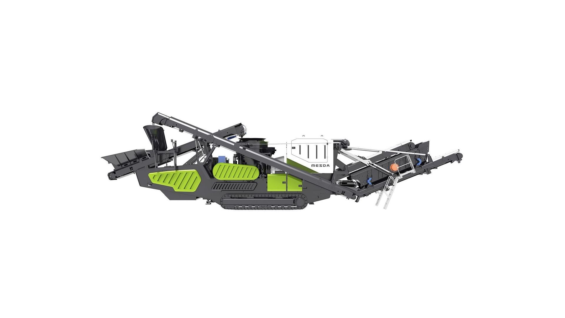 Конусная дробилка MD-C2 на гусеничном ходу предназначена для дробления абразивных горных пород высокой твердости с целью получения высококачественного материала с хорошей формой зерна. Возможные варианты исполнения: дизель-электрический MD-С2H и электрический MD-С2E. В дизель-электрическом варианте используется система Dual Power – возможность работы от внешних источников электроэнергии или от своего дизель-генератора. Дробильная установка может быть оборудована детектором металла, контрольным грохотом и обратным конвейером. Возможна комплектация дробилки вибропитателем.