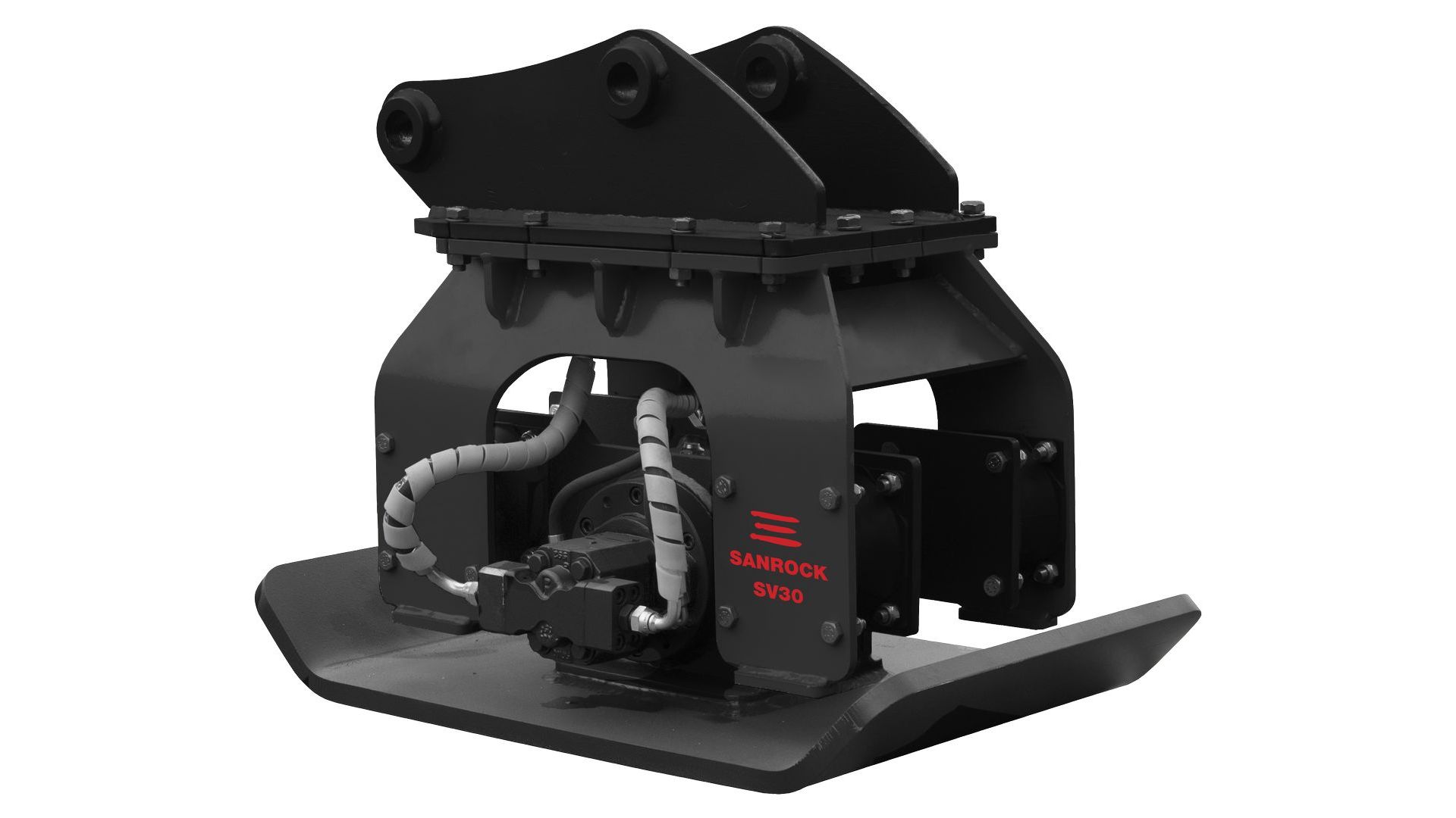 Вибротрамбовка Sanrock SV30 — навесное оборудование, предназначенное для выравнивания и уплотнения грунта при ремонте дорожного полотна для того, чтобы новое дорожное покрытие не деформировалось спустя время.