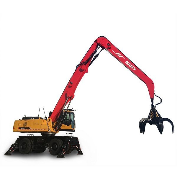 Для выполнения больших объемов погрузки-разгрузки сыпучих материалов, металлолома, круглого леса на складских терминалах, морских и речных причалах, товарных перронах железнодорожных станций и других площадках с твердым покрытием может использоваться SANY SMHW 48 – пневмоколесный перегружатель китайского производства.