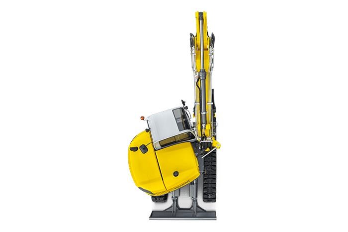 Экскаватор имеет высокую грузоподъемность и компактные габариты. Задняя поворотная консоль и монтированный сбоку стреловой цилиндр гарантируют небольшой передний радиуса поворота. Двигатель в задней части и монтированный сбоку блок управления гидравлической системой способствуют беспрепятственному обзору с правой стороны.